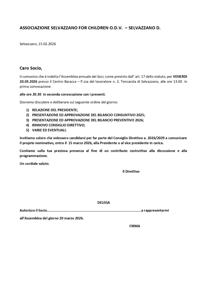 Convocazione Assemblea dei Soci